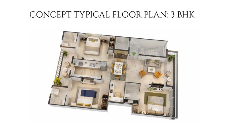 Available in 2.5 BHK and 3.5 BHK configurations, offering spacious and well-illuminated layouts (approximately 1,067–1,423 sq.ft).